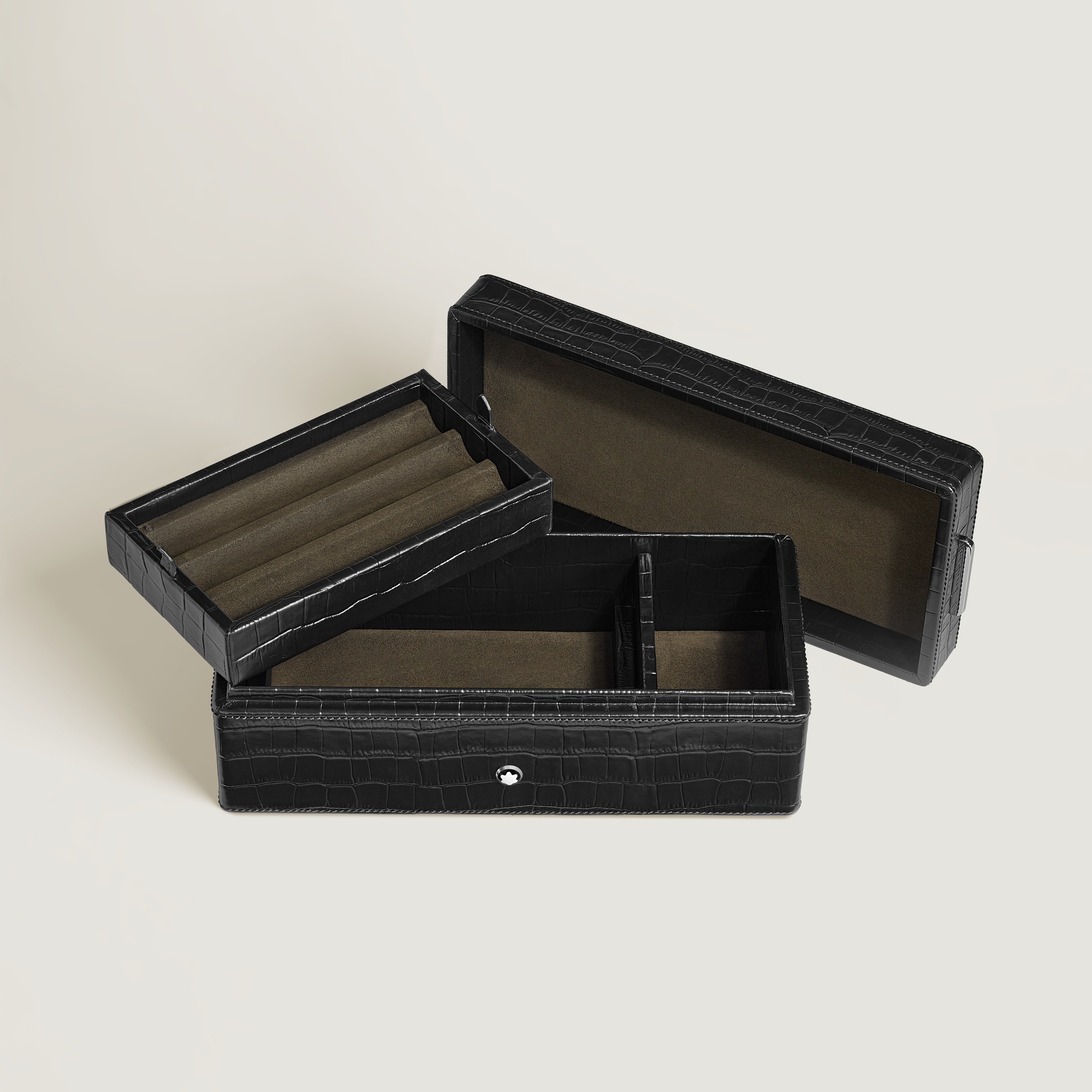 Conçue de manière experte, cette boîte à stylos comporte des emplacements dédiés pour trois instruments d’écriture et de l’encre Montblanc. Associez-la aux accessoires de bureau Montblanc pour une touche raffinée et sophistiquée.