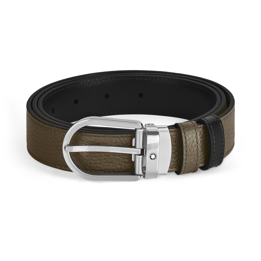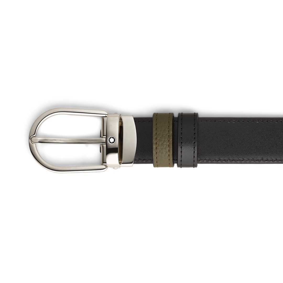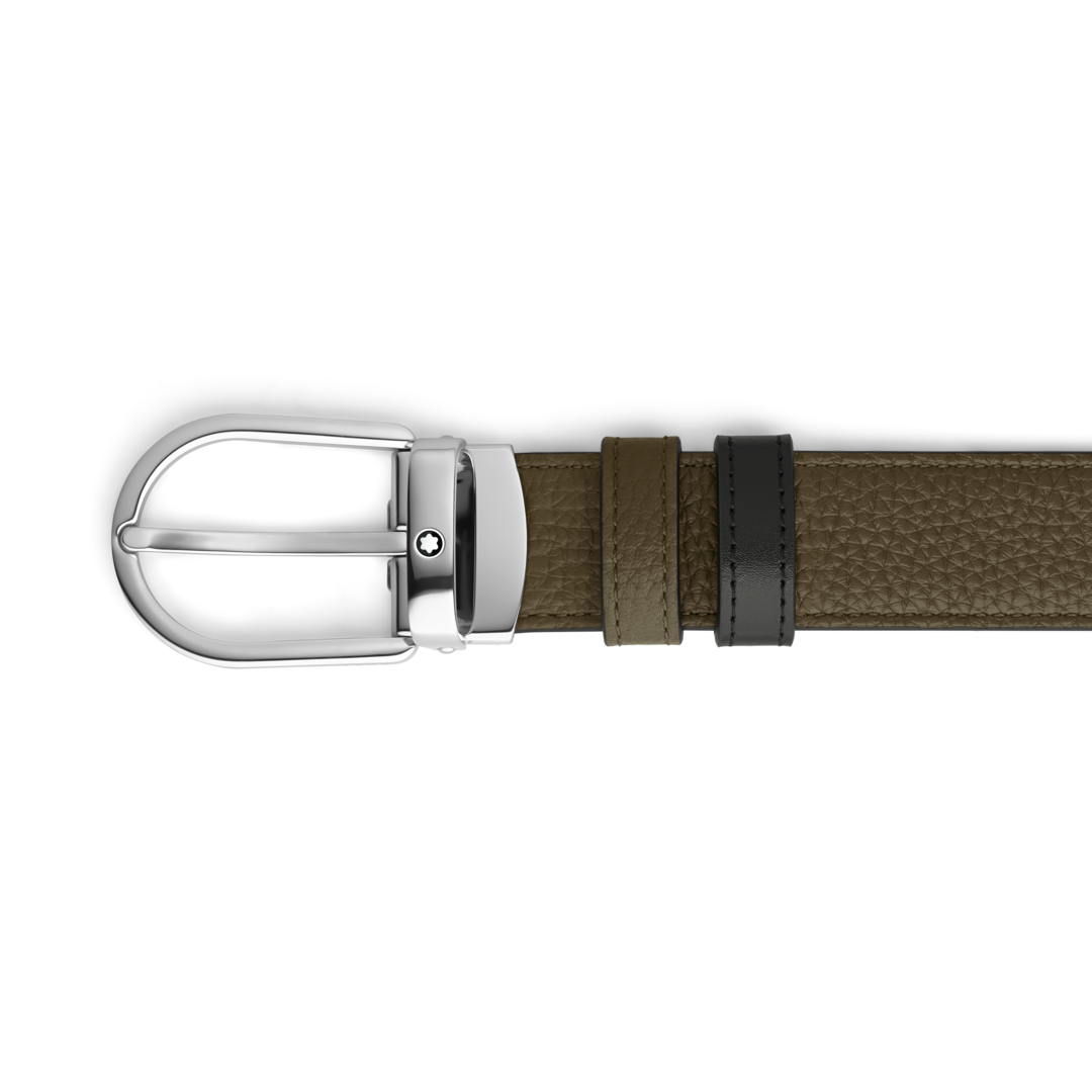 Cette ceinture réversible allie élégance discrète et praticité, offrant deux styles distincts en un seul accessoire. Dotée de notre boucle fer à cheval Montblanc distinctive au fini palladié, l’un des côtés de la ceinture de 30 mm est en cuir grainé de couleur kaki, tandis que l’autre côté est en cuir Meisterstück noir élégant pour une sophistication classique.