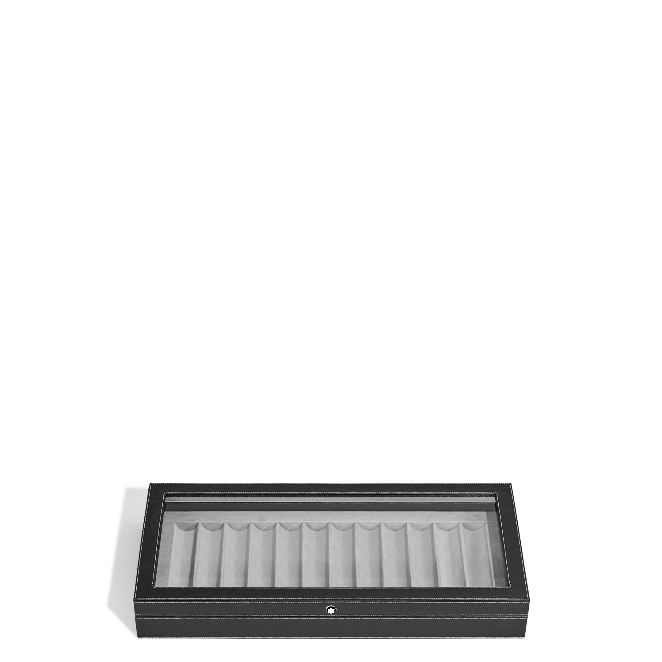Coffret de collectionneur Montblanc en bois et cuir avec doublure en daim beige. Il peut contenir jusqu’à 12 instruments d’écriture. Dimensions : 540 x 53 x 265 cm.