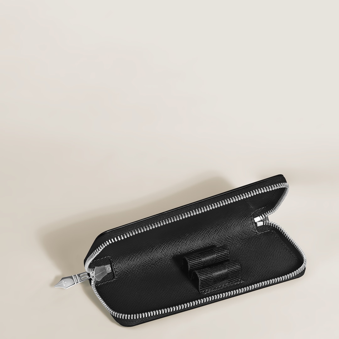 Conçu pour accueillir deux instruments d’écriture de la taille du Meisterstück Classique ou du LeGrand, il constitue un moyen sûr et élégant de transporter ou de ranger vos stylos préférés. Fabriqué en cuir Sartorial embossé en noir classique, il est doté d’une tirette de fermeture éclair en forme de plume, clin d’œil au riche héritage de Montblanc en matière d’écriture.