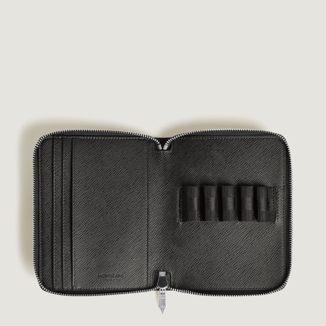 Conçu pour contenir jusqu’à cinq instruments d’écriture de la taille du Meisterstück Classique ou du LeGrand, cet étui est à la fois pratique et sophistiqué. Fabriqué en cuir Sartorial embossé en noir classique, il présente une tirette de fermeture éclair en forme de plume, hommage subtil à l’héritage de Montblanc en matière d’écriture. Élégant et sûr, c’est une façon élégante de ranger et de transporter vos stylos les plus appréciés.