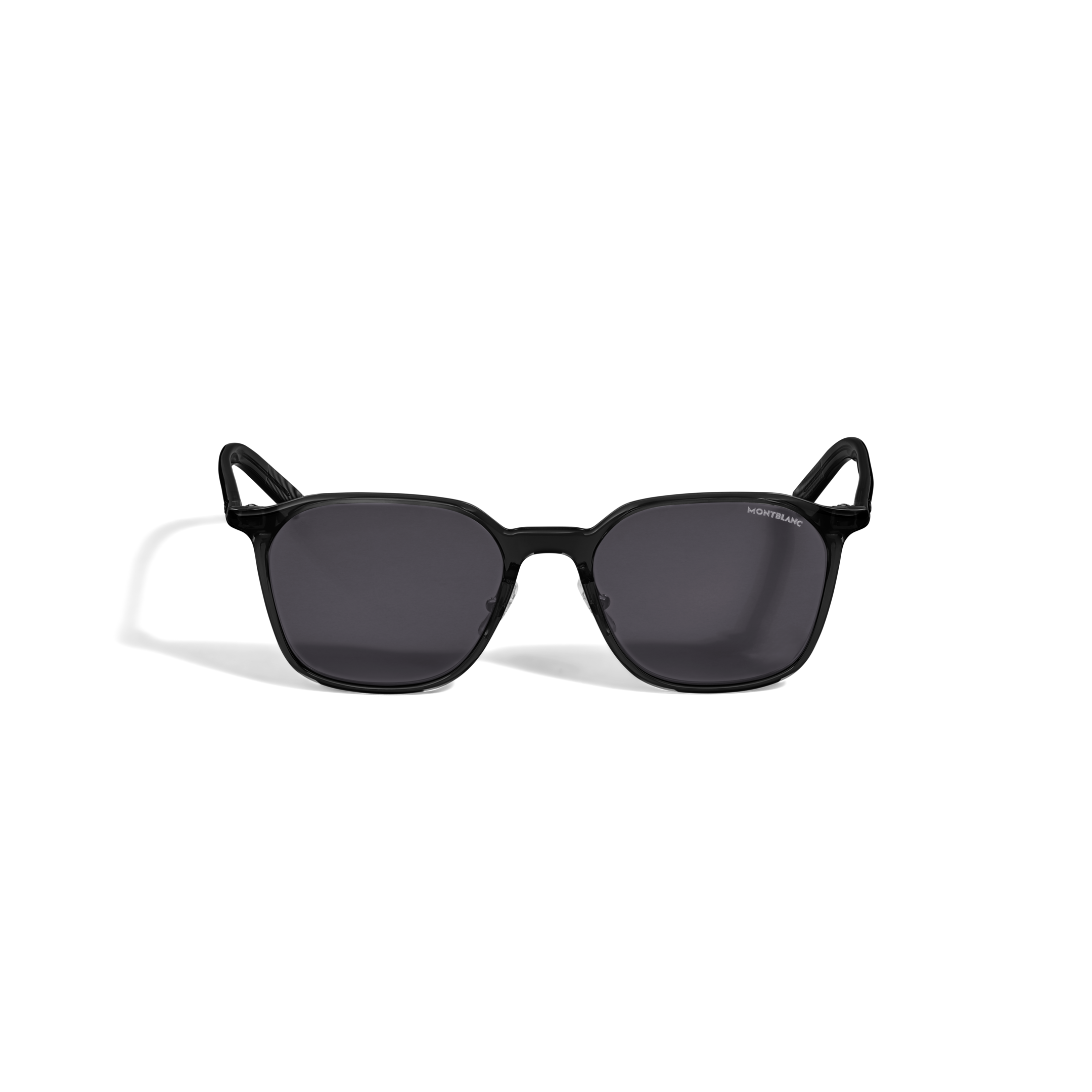 Ces lunettes de soleil carrées possèdent une monture métallique noire et des verres gris. L’emblème Montblanc est dissimulé dans la branche. Le logo Montblanc est gravé au laser sur le verre gauche des lunettes et le motif antidérapant gravé au laser sur la partie interne des extrémités des branches assure une tenue confortable.