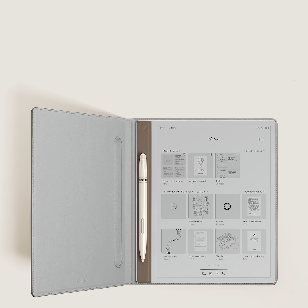 Montblanc Digital Paper – un nouveau chapitre dans la tradition d’innovation réfléchie de la Maison. Conçu pour les personnes qui apprécient la clarté tranquille de l’écriture, le Montblanc Digital Paper offre un espace numérique dédié pour écrire, dessiner ou analyser en toute simplicité. Qu’il s’agisse d’une page blanche, d’annoter des documents ou de trouver et de partager des notes, l’expérience est fluide et raffinée. Trois pointes interchangeables permettent de donner à chaque trait une sensation unique, personnelle et satisfaisante. Inscrit dans l’héritage du savoir-faire de Montblanc, le Montblanc Digital Paper donne une forme moderne à une idée familière. Un compagnon pour ceux qui n’écrivent pas simplement pour communiquer, mais pour laisser une impression.
