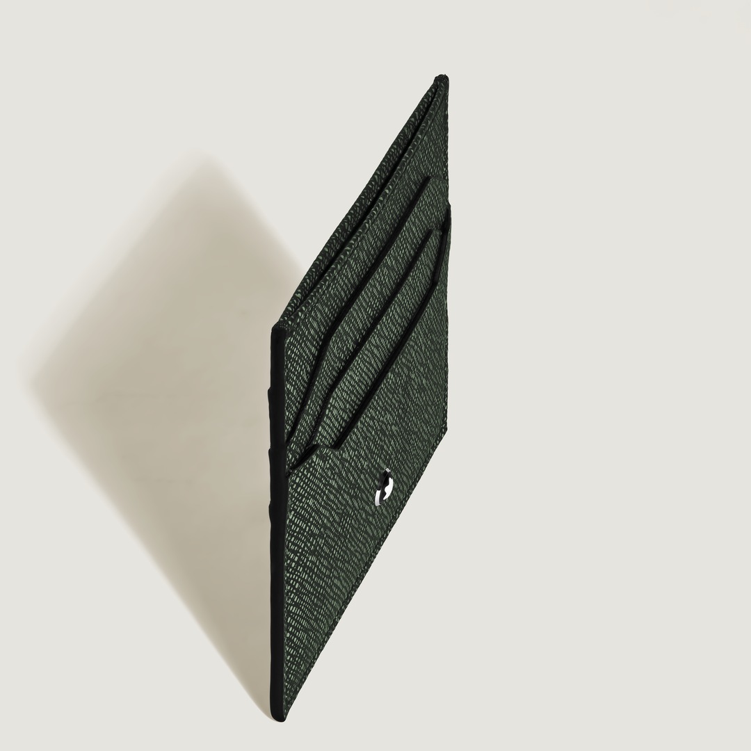 Pratique et raffiné, ce porte-cartes est fabriqué en cuir Sartorial embossé bicolore dans une combinaison élégante de kaki et de noir. Il comporte six poches pour ranger les cartes de crédit ou de visite, ainsi qu’une poche supplémentaire pour ranger les notes pliées ou les reçus.
