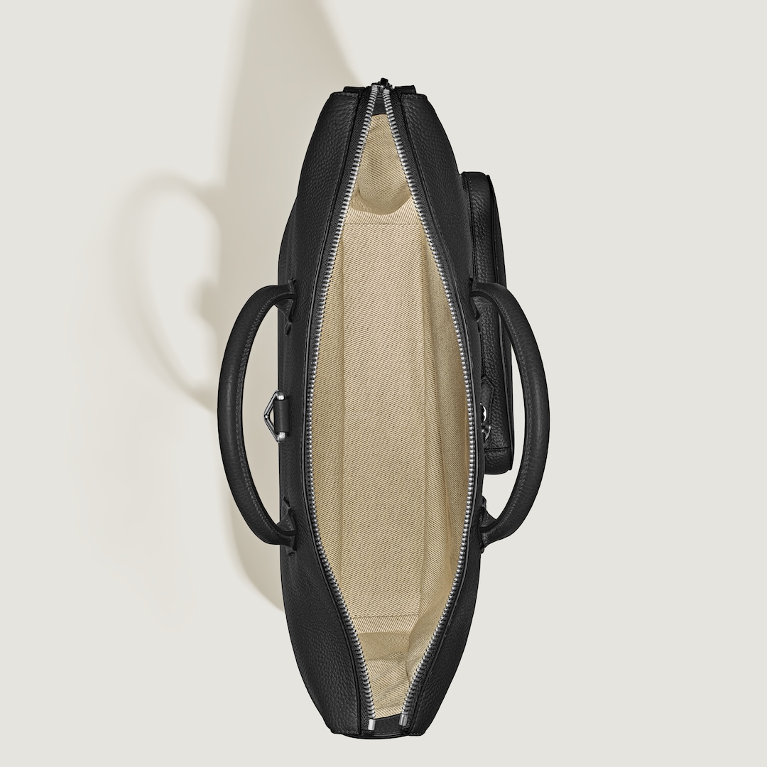 Le sac 24/7 redéfinit le luxe avec ses formes douces et son design innovant. Fabriqué à partir du meilleur cuir noir de Montblanc, ce sac est orné d’un emblème lumineux qui rend hommage aux origines de l’étoile Montblanc. Construit avec soin, il comprend des poches extérieures pour garder les objets essentiels à portée de main et présente des détails caractéristiques tels que des fermetures éclair en forme de plume, des boutons-pression et des coutures raffinées. Conçu pour être polyvalent, le sac est doté de deux poignées supérieures et de deux sangles détachables, ce qui lui permet de se transformer en sac à dos sans effort.
