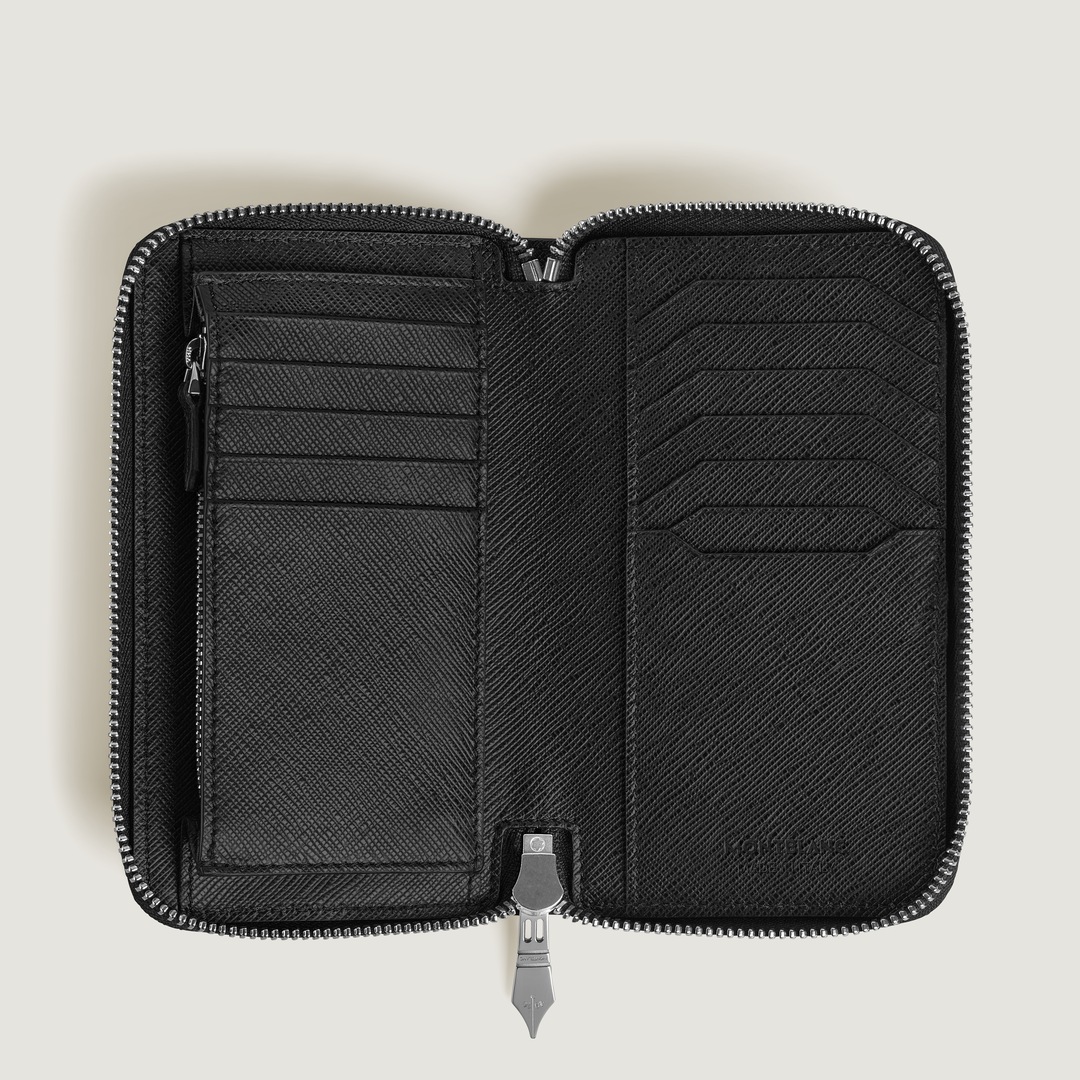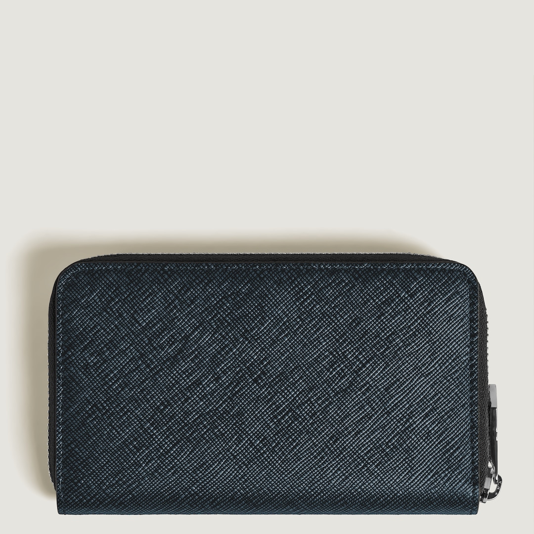 Ce portefeuille zippé fonctionnel allie un design intemporel à une fonctionnalité pratique. Fabriqué en cuir Sartorial embossé dans une élégante combinaison de bleu et de noir, il est doté d’une tirette métallique distinctive en forme de plume, qui rend hommage à l’héritage de Montblanc en matière d’écriture. À l’intérieur, le portefeuille contient 12 fentes pour cartes de crédit, un porte-monnaie zippé sécurisé et trois poches supplémentaires pour les reçus ou d’autres essentiels.