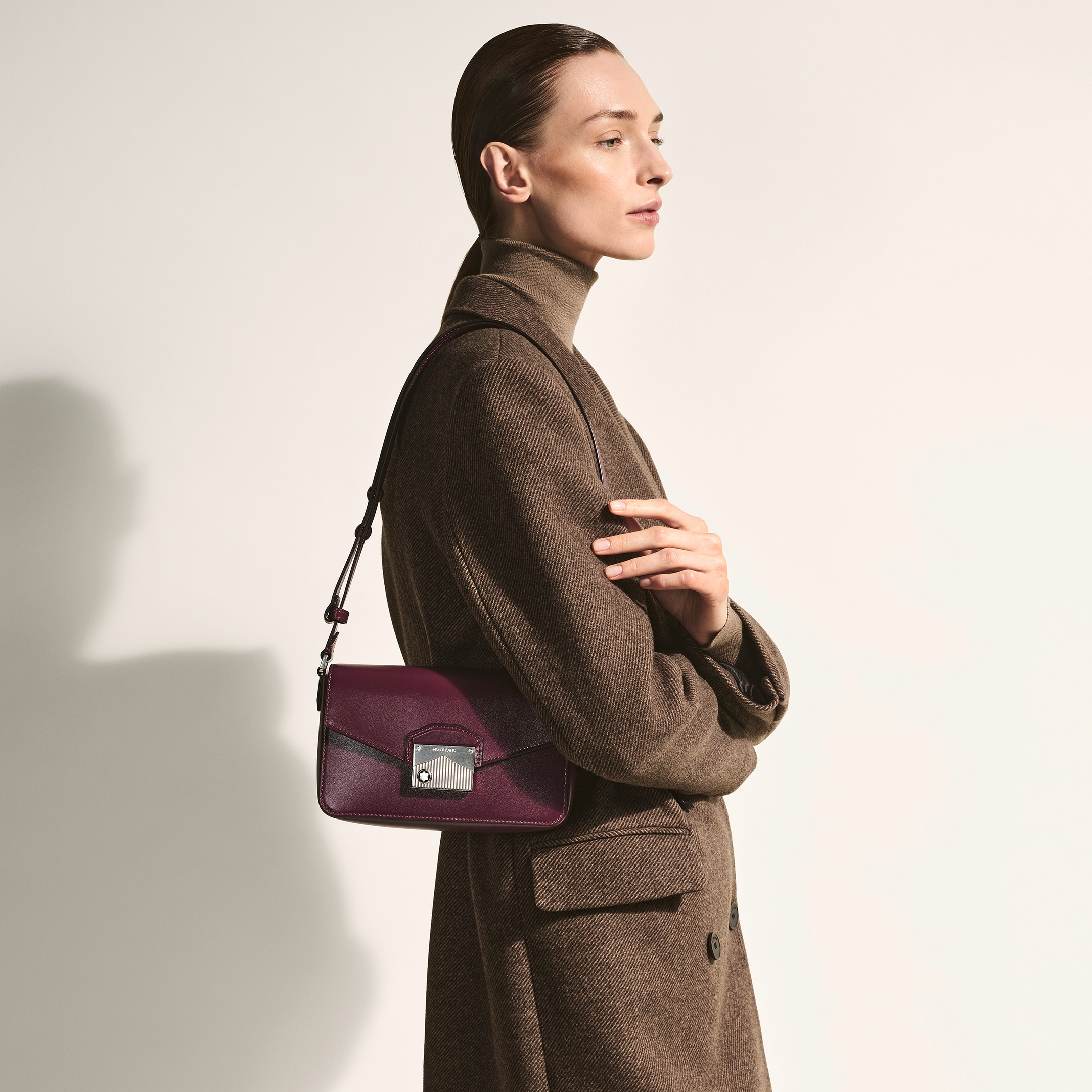 Découvrez le nouveau sac Reporter mini format Meisterstück, fabriqué en cuir coloris cassis. Cette pièce élégante est dotée d’une bandoulière en cuir réglable qui permet de la porter confortablement à l’épaule, tandis que le compartiment principal spacieux est facilement accessible en ouvrant le rabat avant. Embossée d’une silhouette montagneuse et couronnée du logo de la Maison, une fermeture métallique distinctive inspirée des pics du Mont-Blanc ajoute une touche sophistiquée aux tenues de tous les jours et des occasions spéciales.