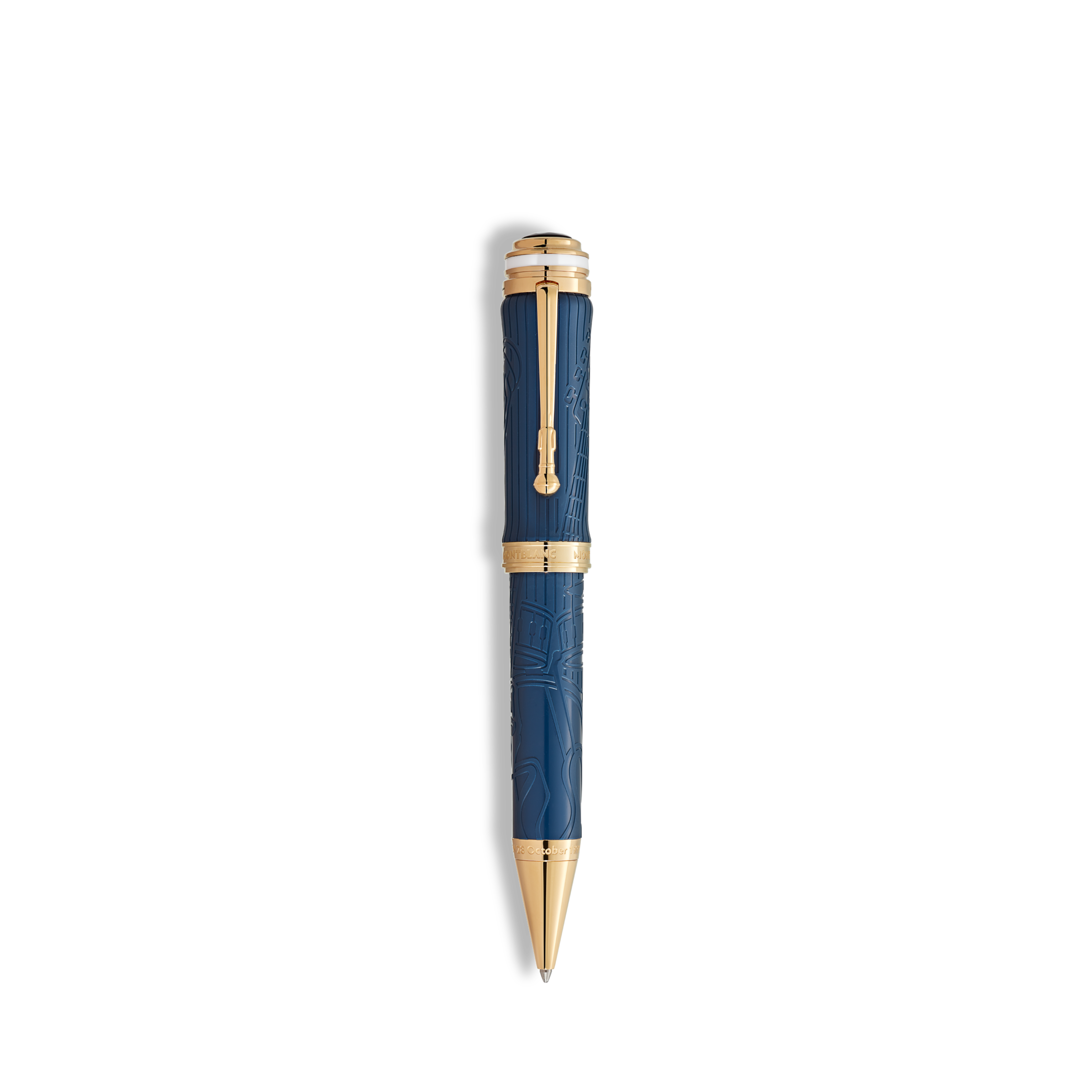 S’inspirant de l’album Greatest Hits II de 1991, Montblanc honore avec le Great Characters Hommage à Queen Special Edition l’un des albums les plus populaires de Queen. Faisant écho à la combinaison de couleurs frappante du double LP Greatest Hits II, cette édition apparaît en bleu foncé avec des attributs plaqués or. Les quatre musiciens à l’origine de cette compilation légendaire sont entrés dans l’histoire : Freddie Mercury, le charismatique chanteur dont la voix s’étend sur plusieurs octaves et est colorée par un riche vibrato ; Brian May, le guitariste virtuose et son incomparable son de guitare électrique ; John Deacon, le bassiste polyvalent et créatif ; et Roger Taylor, le cœur rythmique du groupe. En signe de leur virtuosité musicale, qui a fait de l’album de 1991 l’un des plus vendus et des plus connus au monde, les « outils de travail » sont subtilement immortalisés sur la résine précieuse : microphone et basse sur le capuchon ; guitare et batterie sur le corps. Sur l’album Greatest Hits II, le groupe présente une large sélection de ses succès, des hymnes rock aux chansons pop entraînantes, y compris des titres emblématiques tels que A Kind of Magic, des classiques comme Radio Ga Ga et The Show Must Go On, l’entraînant I Want to Break Free ou le poignant Under Pressure, une collaboration avec David Bowie.