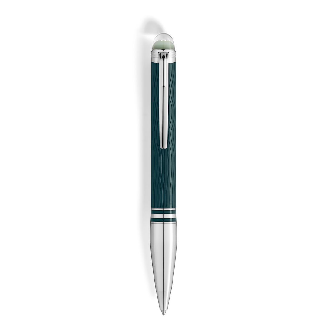 StarWalker PolarGreen donne vie à la beauté des aurores boréales. Sur Terre, les humains peuvent regarder vers le ciel et être transportés dans des royaumes d’émerveillement en assistant à ce spectacle grandiose. Le dôme du capuchon est réalisé en résine transparente et brille en basse lumière, rappelant les aurores dansantes et enchanteresses du ciel nocturne. Le motif ondulé de la résine précieuse vert foncé du corps capture admirablement l’éclat spectral des lumières, et la finition mate accentue les reflets apparents. Les anneaux en résine vert foncé de la partie avant mettent en valeur les attributs platinés du stylo bille.