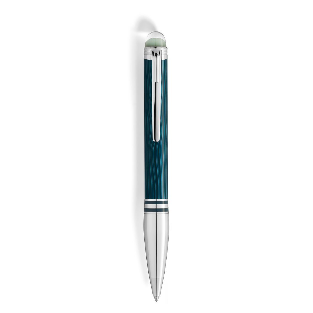 StarWalker PolarGreen donne vie à la beauté des aurores boréales. Sur Terre, les humains peuvent regarder vers le ciel et être transportés dans des royaumes d’émerveillement en assistant à ce spectacle grandiose. Le dôme du capuchon est réalisé en résine transparente et brille en basse lumière, rappelant les aurores dansantes et enchanteresses du ciel nocturne. Le motif guilloché du corps capture admirablement l’éclat spectral des lumières, et la finition laquée vert foncé accentue les reflets apparents. Les anneaux en résine vert foncé de la partie avant mettent en valeur les attributs platinés du stylo bille.
