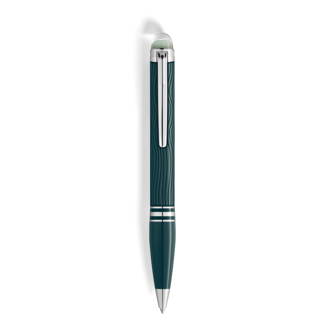 StarWalker PolarGreen donne vie à la beauté des aurores boréales. Sur Terre, les humains peuvent regarder vers le ciel et être transportés dans des royaumes d’émerveillement en assistant à ce spectacle grandiose. Le dôme du capuchon est réalisé en résine transparente et brille en basse lumière, rappelant les aurores dansantes et enchanteresses du ciel nocturne. Le motif ondulé de la résine précieuse vert foncé du capuchon et du corps capture admirablement l’éclat spectral des lumières, et la finition mate accentue les reflets apparents. Les anneaux en résine vert foncé de la partie avant mettent en valeur les attributs platinés du stylo bille.