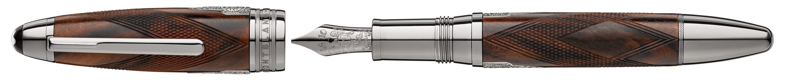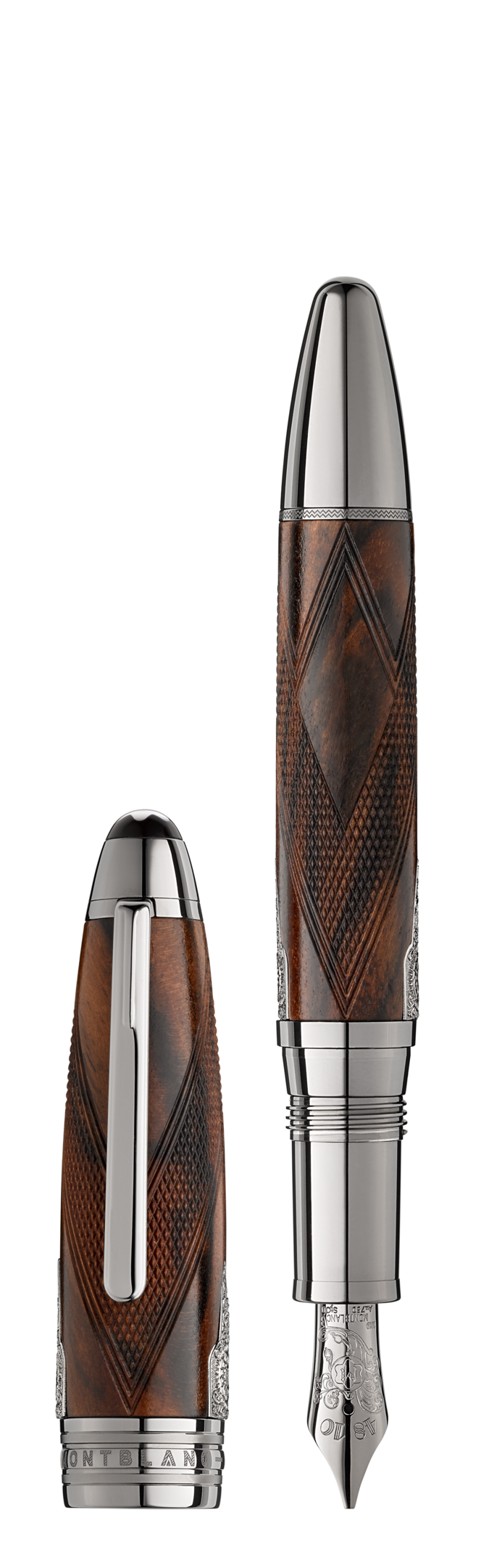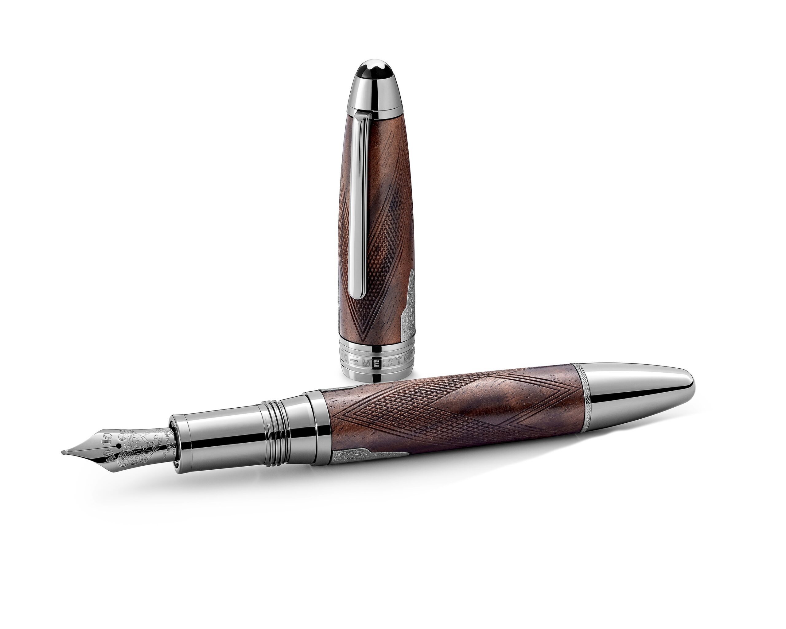 Le « Meisterstück Great Masters James Purdey & Sons » allie le savoir-faire de Montblanc, créateur d’instruments d’écriture exquis, à celui d’un fabricant exclusif d’armes et de fusils de chasse. James Purdey & Sons fournit les clients les plus exigeants du monde entier, qui recherchent l’alliance parfaite de fonctionnalité, de beauté, d’exclusivité et de qualité durable. Les métiers de sculpture du bois et de gravure du métal de la Maison James Purdey sont uniques, secrets et extraordinaires. Le stylo plume Meisterstück est fabriqué en bois de noyer avec marqueterie Purdey et sceau incrusté en métal, et doté d’une plume en or Au 750/1000 et d’attributs ruthéniés.