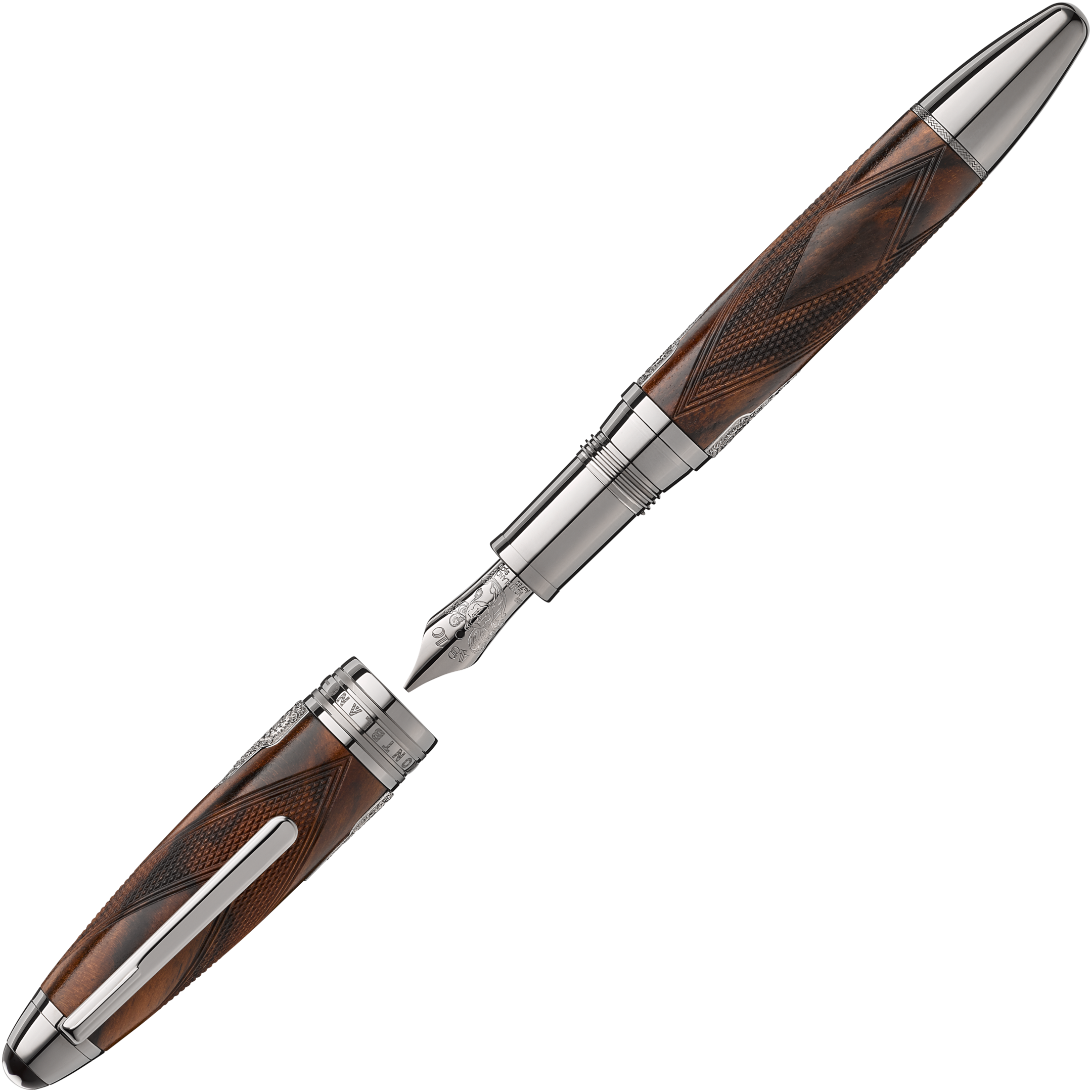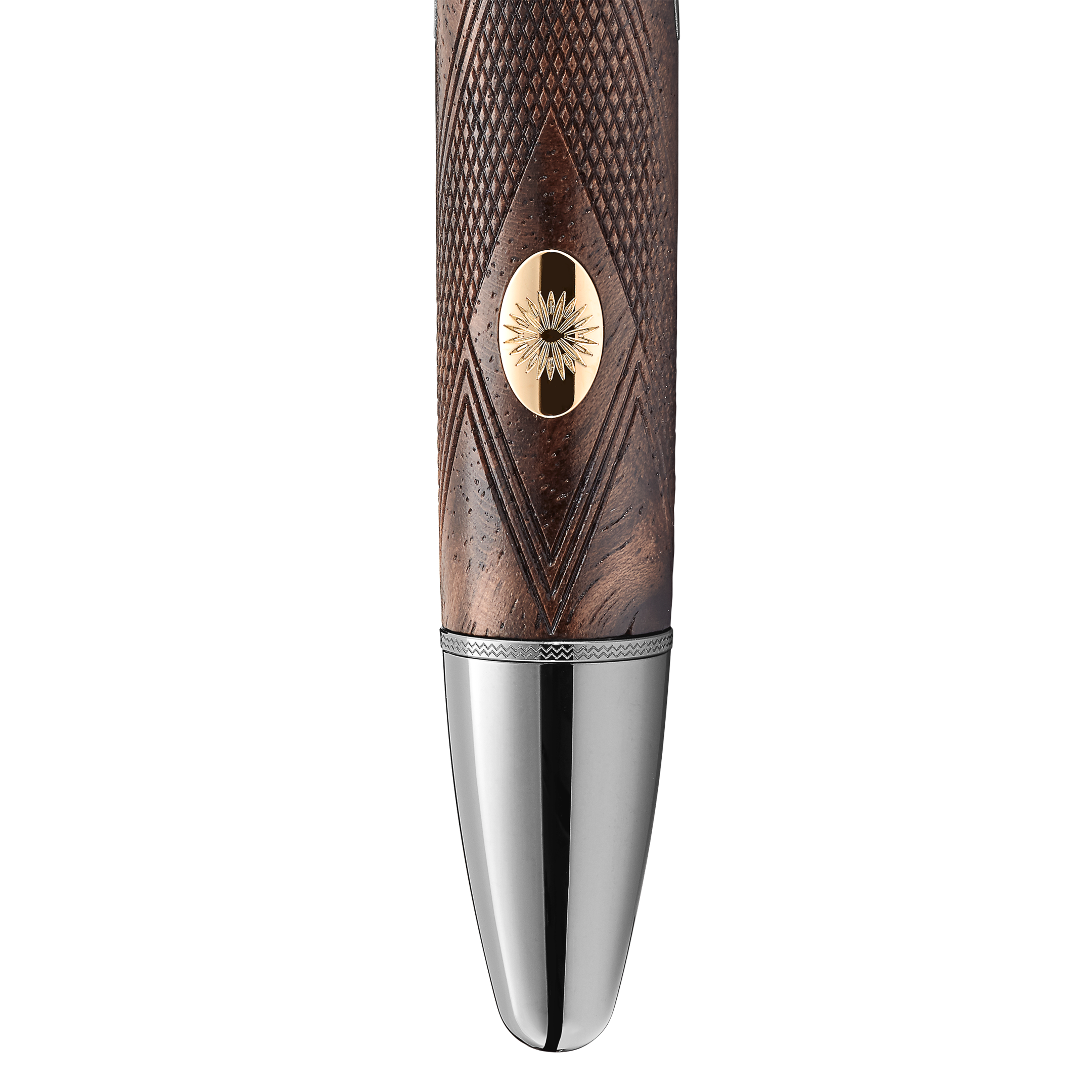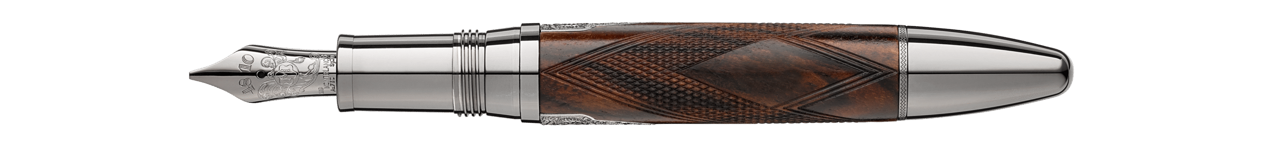 Le « Meisterstück Great Masters James Purdey & Sons » allie le savoir-faire de Montblanc, créateur d’instruments d’écriture exquis, à celui d’un fabricant exclusif d’armes et de fusils de chasse. James Purdey & Sons fournit les clients les plus exigeants du monde entier, qui recherchent l’alliance parfaite de fonctionnalité, de beauté, d’exclusivité et de qualité durable. Les métiers de sculpture du bois et de gravure du métal de la Maison James Purdey sont uniques, secrets et extraordinaires. Le stylo plume Meisterstück est fabriqué en bois de noyer avec marqueterie Purdey et sceau incrusté en métal, et doté d’une plume en or Au 750/1000 et d’attributs ruthéniés.